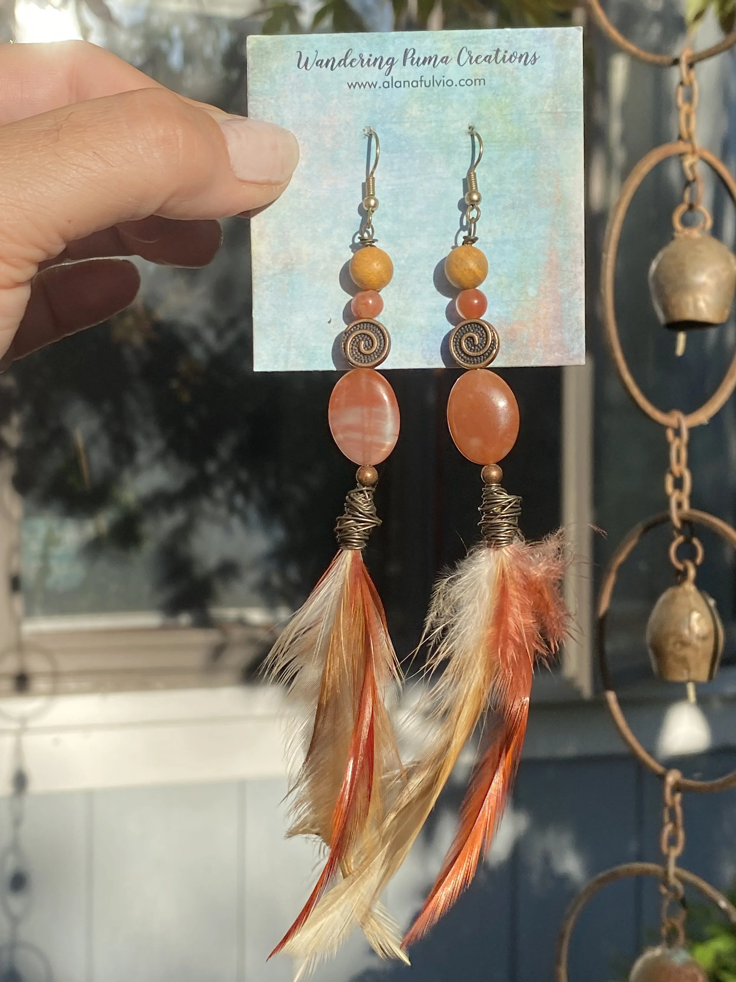Carnelian (2x) & Feather Energetic Earrings (medium)