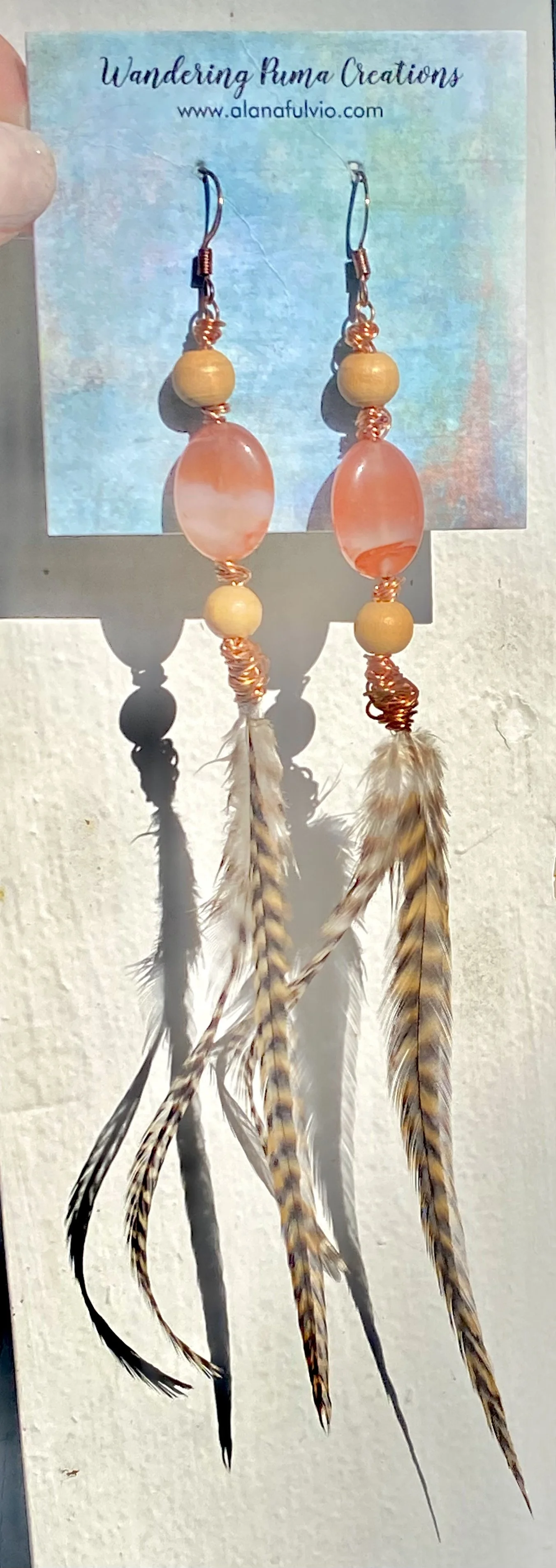 Carnelian & WOOD (2X) Feather Energetic Earrings (medium)